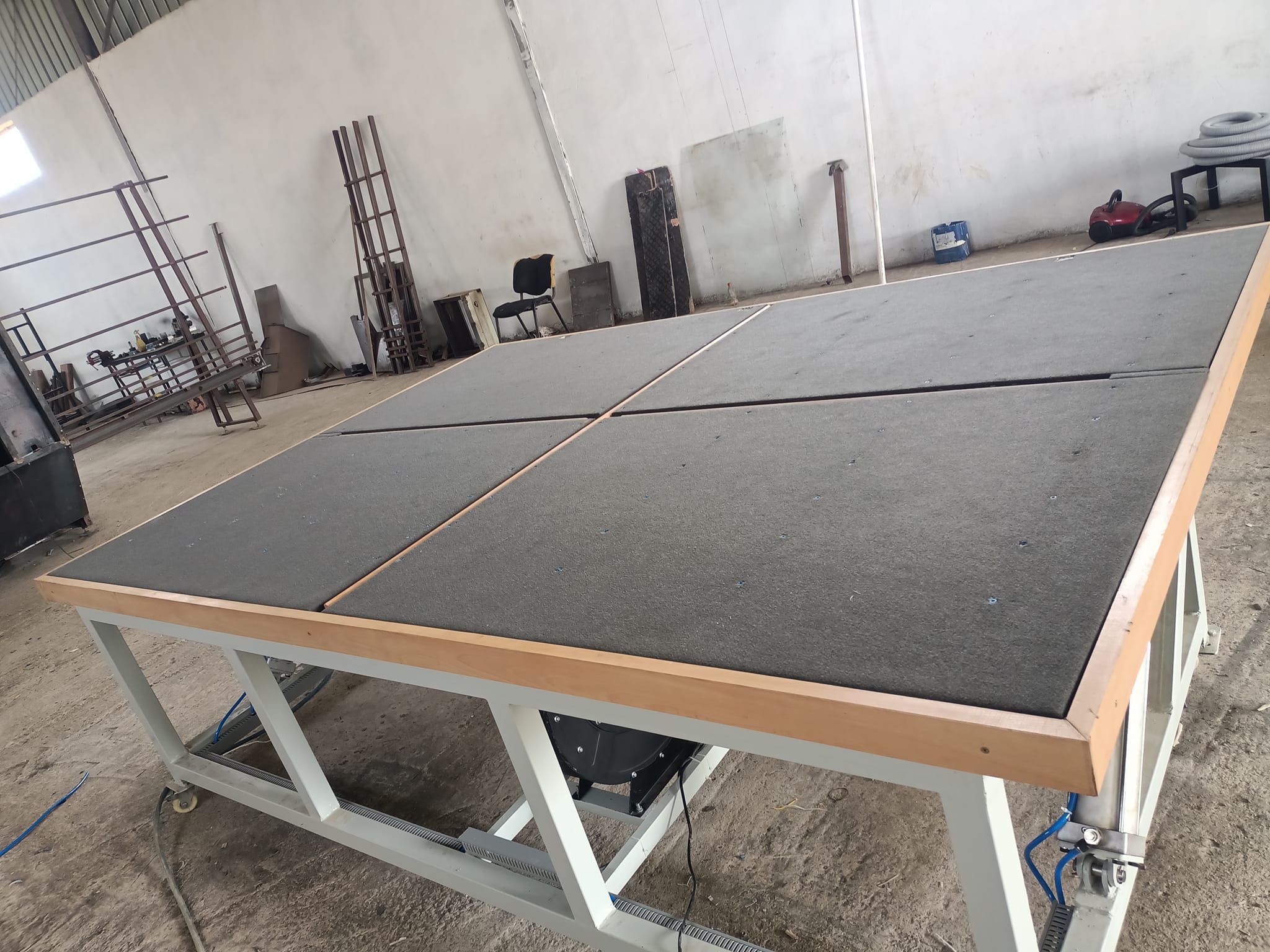 Table de cassage pour la coupe manuelle du verre avec coussin d'air, barres de cassage et basculement pneumatique